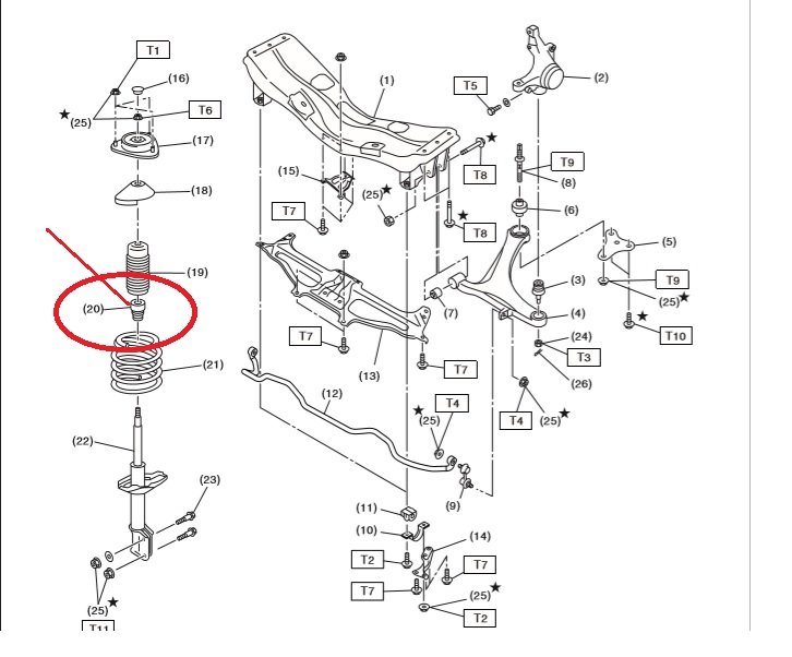 Thank you for the interest and the response. I have hopefully added the diagram of the front suspension and circled the item that is in question.